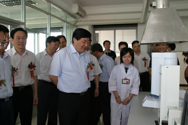 (李传卿书记参观考察广西食品农产品质量监督检验中心)