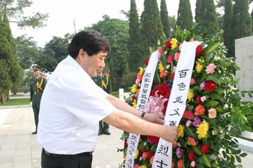 (李传卿书记亲自为百色起义革命烈士纪念碑敬献花圈)