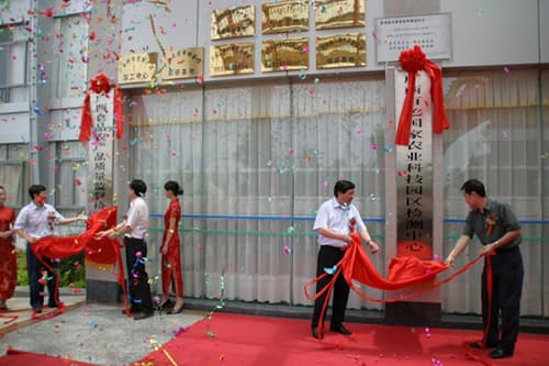 (李传卿书记、王德伦副秘书长、刘正东市长、邓于仁局长共同为广西食品农产品质量监督检验中心、广西百色国家农业科技园区检测中心成立揭牌)