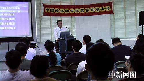 带队的中国国侨办经济科技司张健青副司长告诉记者,中国政府计划用十五年时间,在二0二0年建成创新型国家。建设创新型国家,核心就是把增强自主创新能力作为发展科学技术的战略基点,走出中国特色自主创新道路,推动科学技术的跨越式发展。这位副司长认为,建设创新型国家,关键在于科技,在于人才。张健青还对一位来自当地生物医药研发基地的博士介绍说,最近,为了鼓励、扶持优秀海外人才回国创业,中国政府十六个部门联合下发了《关于建立海外高层次留学人才回国工作绿色通道的意见》,帮助海外优秀人才解决回国创业面临的各种实际问题。